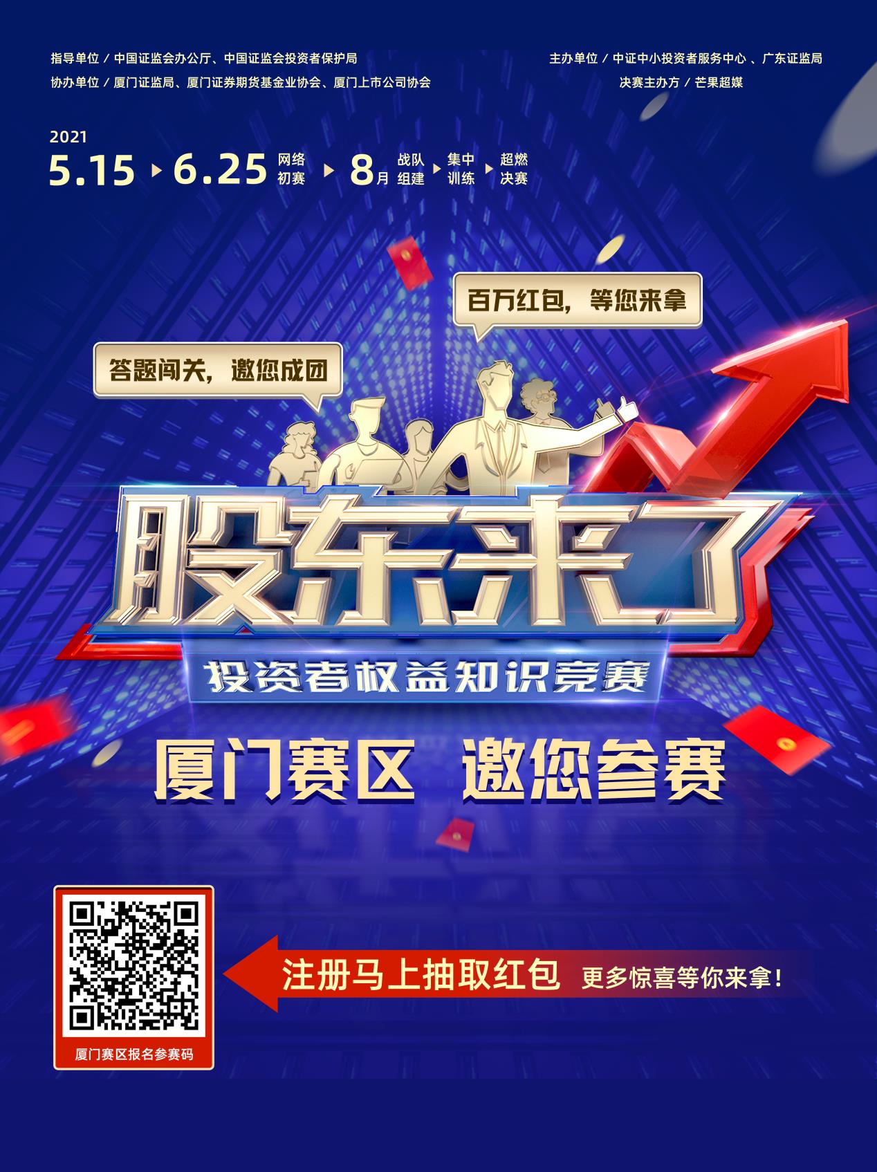 2021年是“十四五”規(guī)劃開局之年,為進(jìn)一步落實(shí)證監(jiān)會(huì)黨委關(guān)于資本市場(chǎng)人民性要求和保護(hù)投資者合法權(quán)益的職責(zé),在會(huì)辦公廳、投保局指導(dǎo)下,投服中心將聯(lián)合廣東、四川、湖北、內(nèi)蒙古、海南、西藏六證監(jiān)局共同舉辦《股東來了》2021投資者權(quán)益知識(shí)競(jìng)賽,面向廣大中小投資者普及權(quán)益知識(shí),示范引領(lǐng)全面知權(quán)、積極行權(quán)、依法維權(quán)。
